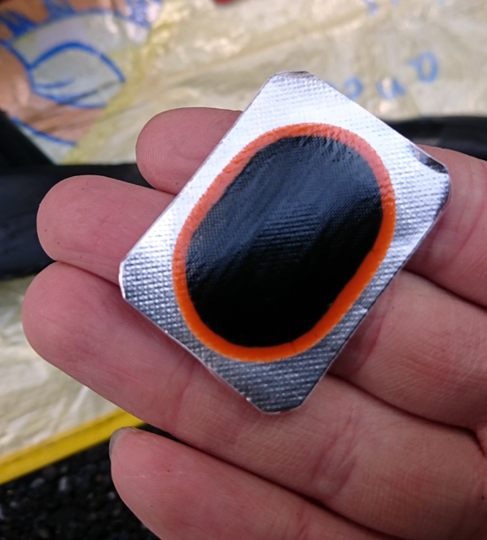 修理キットに付属している紙やすりでパンク箇所の周りを、